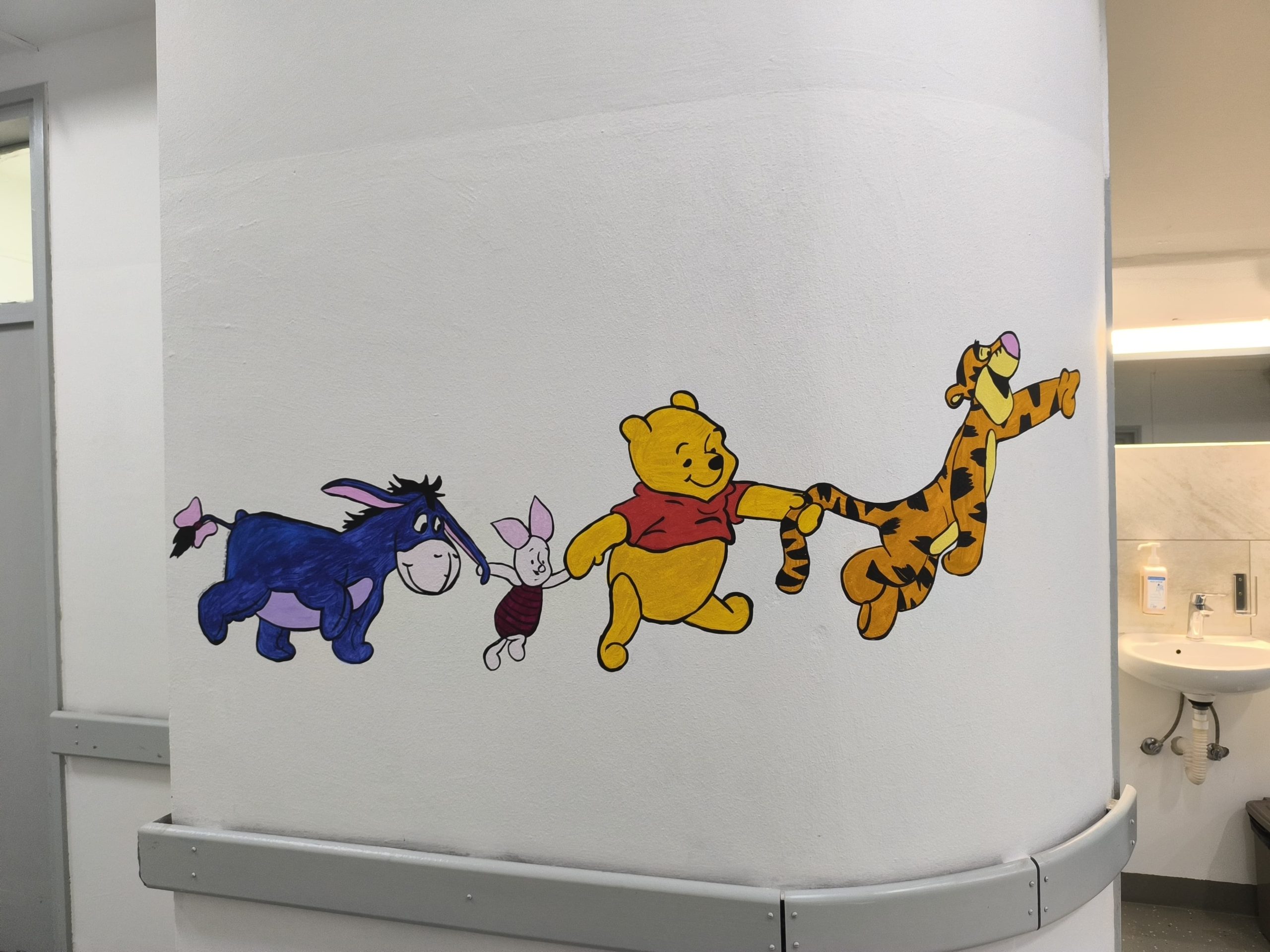 Ovaj put nekoliko je volonterki dio svog slobodnog vikenda posvetilo upravo toj ideji. Uz malo maÅ”te, puno dobre volje i oko desetak sati rada, nastali su motivi koji sada razbijaju monotoniju bolniÄkog okruženja.