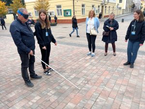 Udruga slijepih Bjelovar u suradnji s institucijama i zdravstvenim ustanovama na gradskom korzu je građane pokušavala staviti u ulogu slijepih sugrađana. Uz tamne naočale i bijeli štap videći pratitelji vodili su ih šetnicom.