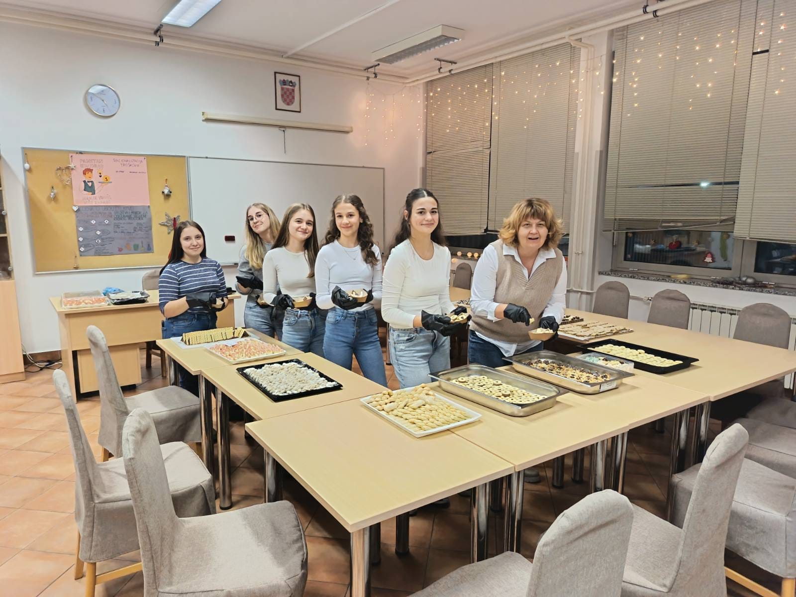 Druga humanitarna akcija obuhvaćala je pečenje oko 200 kilograma suhih kolača, u čemu su sudjelovali učenici 3.c i 3.g uz podršku nastavnika. Učenici 1.a pakirali su donirane igračke, dok su dvije učenice 3.a donirale nekoliko kutija odjeće. Dio donacija već je pronašao svoje nove vlasnike, a ostatak je ponuđen na humanitarnoj prodaji.
