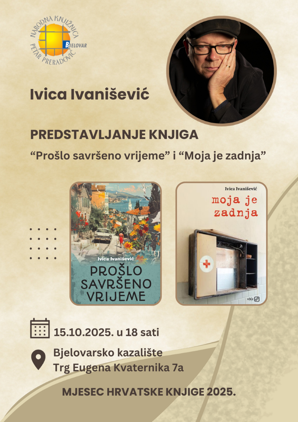 U Bjelovarskom kazalištu u srijedu, 15. listopada 2025. godine, s početkom u 18 sati, održat će se predstavljanje dviju knjiga poznatog hrvatskog autora Ivice Ivaniševića – „Prošlo savršeno vrijeme: zašto je prije bilo bolje“ i „Moja je zadnja: zbirka priča i pričica“.