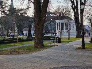 Središnji park bio je pun obitelji s djecom, šetača i zaljubljenih parova. Najmlađi su trčali oko fontane i igrali se na travi, dok su stariji iskoristili priliku za laganu šetnju i upijanje vitamina D. Klupice su bile zauzete, a razgovor i smijeh širili su se na sve strane.