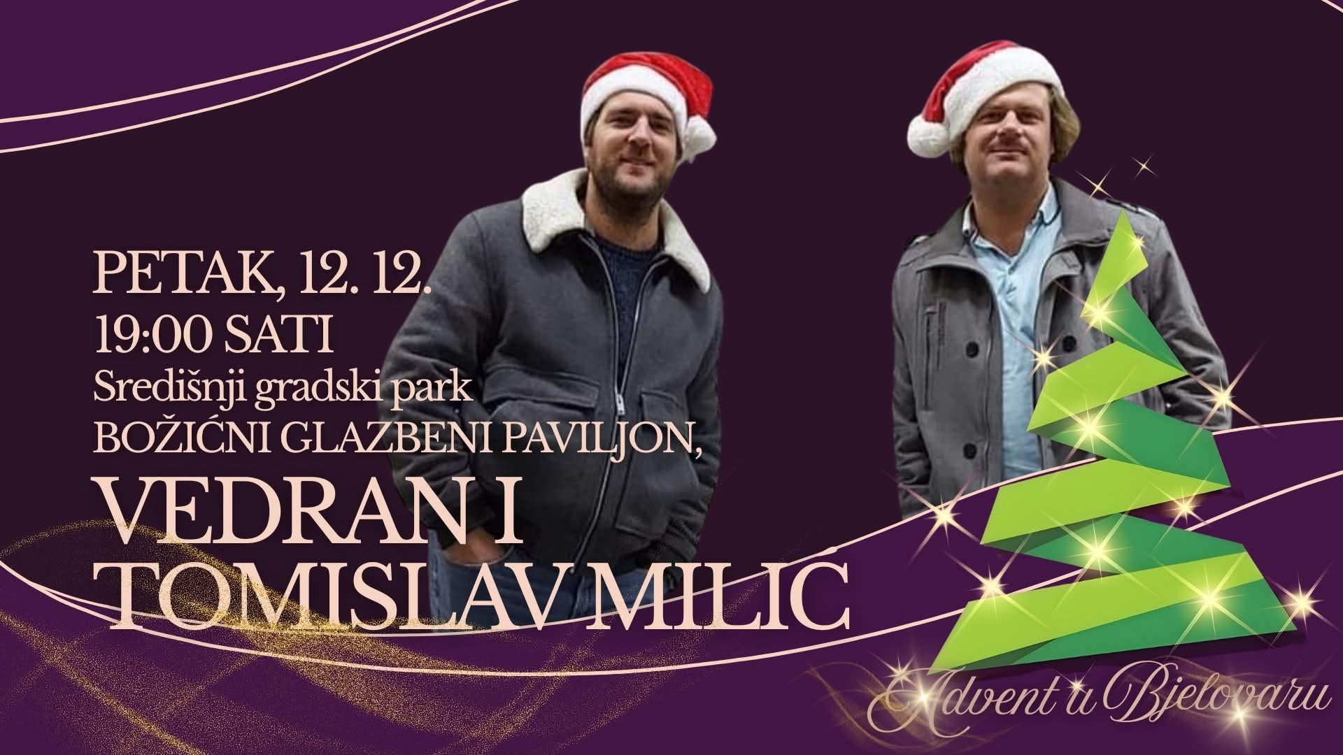 U sklopu tradicionalne manifestacije “Advent u Bjelovaru” u petak, 12. prosinca u 19 sati, ljubitelje glazbe očekuje poseban koncert klasične i zabavne glazbe s renomiranim bjelovarskim umjetnicima Vedranom i Tomislavom Milićem. Događaj će se održati u Božićnom glazbenom paviljonu u središtu Bjelovara, a ulaz je otvoren za sve posjetitelje željne glazbenog ozračja predbožićnog vremena.