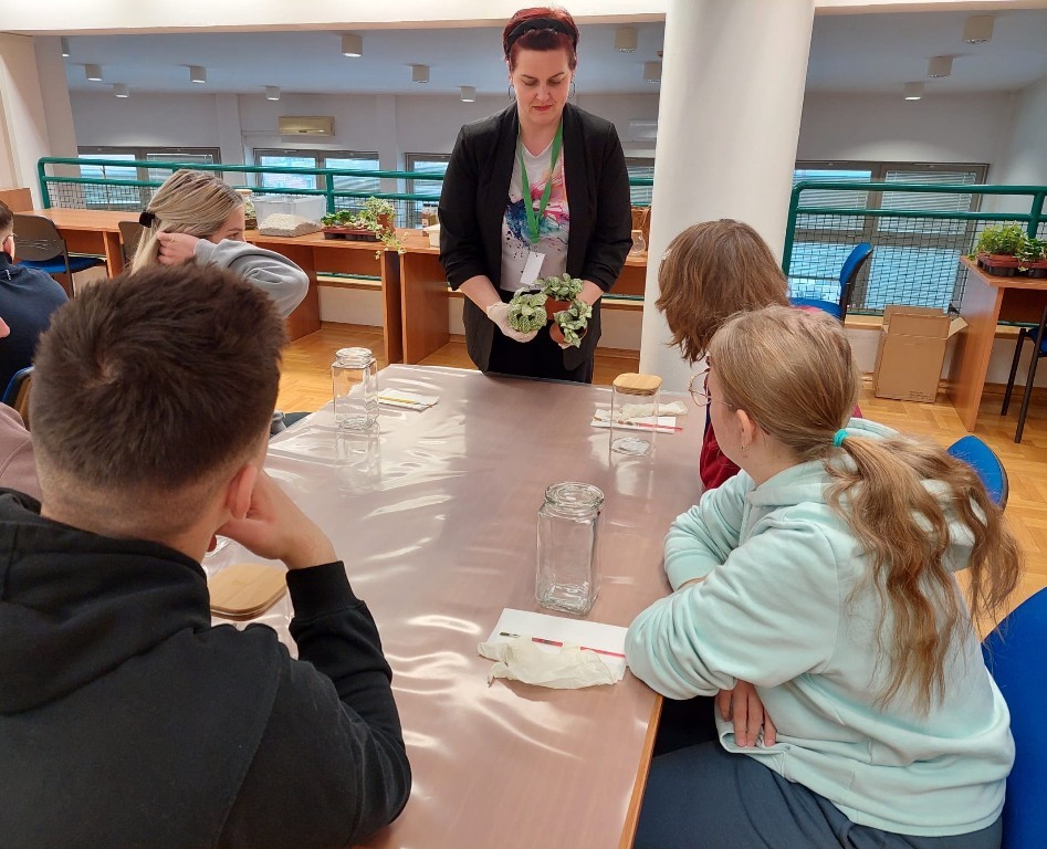 Radionice je vodila Andrea Petrić, knjižničarka Turističko-ugostiteljske i prehrambene škole, koja se izradom biljnih terarija bavi dugi niz godina. Sudionike je detaljno upoznala s cijelim procesom – od pripreme posude i slaganja potrebnih slojeva, preko odabira i sadnje biljaka, do završnog uređenja i savjeta o pravilnoj brizi.