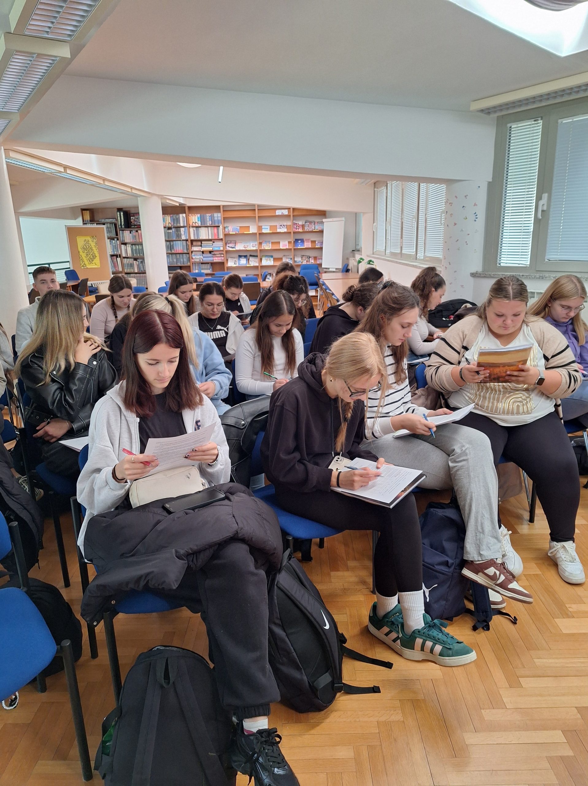 – Suradnjom školske psihologinje Marine Pavić, knjižničarke Zorke Renić i nastavnika psihologije Ive Dragića akcija mjerenja raspoloženja „Dobar dan, kako si?“ provedena je i u našoj Školi, u sklopu koje su učenici i nastavnici imali priliku izraziti kako se osjećaju i osvijestiti važnost emocionalne samorefleksije. Akcija je na kreativan i poticajan način potaknula sve da razmisle o vlastitim emocijama, stresu i načinima suočavanja s izazovima svakodnevice. Uz akciju, provode se i radionice o mentalnom zdravlju, na kojima  učenici razgovaraju o emocijama, međusobnim odnosima, stresu i važnosti traženja pomoći kada je potrebna. Interaktivnim radom, učenici osvještavaju  da mentalno zdravlje nije samo odsutnost poteškoća već i sposobnost nošenja s izazovima života, empatije i podrške drugima. Posebno zanimljiv i topao trenutak u knjižnici bio je posjet terapijskog psa Lune i njezine voditeljice Nataše Brekalo, koja je učenicima predstavila rad terapijskih pasa i njihovu važnu ulogu u očuvanju mentalnog zdravlja. Učenici su imali priliku upoznati Lunu, saznati kako terapijski psi pomažu osobama koje se suočavaju s anksioznošću, depresijom ili stresom te iz prve ruke doživjeti koliko blagotvoran učinak ima kontakt sa životinjom – ističe psihologinja Pavić.
