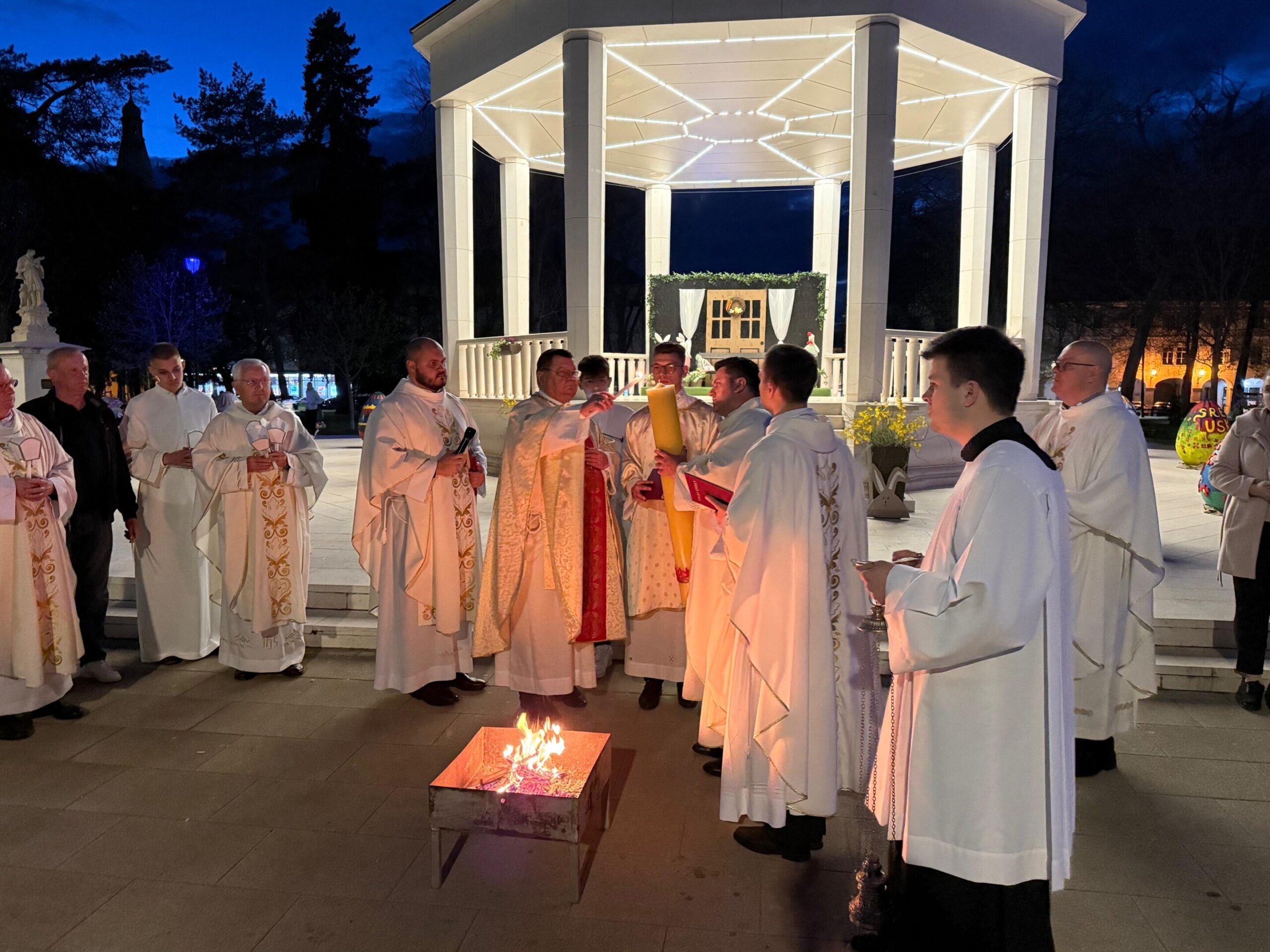 U ozračju Vazmenog bdjenja na Veliku subotu, 4. travnja, bjelovarsko-križevački biskup Vjekoslav Huzjak predvodio je središnje uskrsno slavlje u Bjelovaru. Liturgijsko slavlje započelo je blagoslovom ognja na središnjem gradskom trgu, nakon čega su vjernici u svečanoj procesiji ušli u bjelovarsku katedralu. Nakon navještaja Vazmenog hvalospjeva uslijedila je Liturgija riječi.