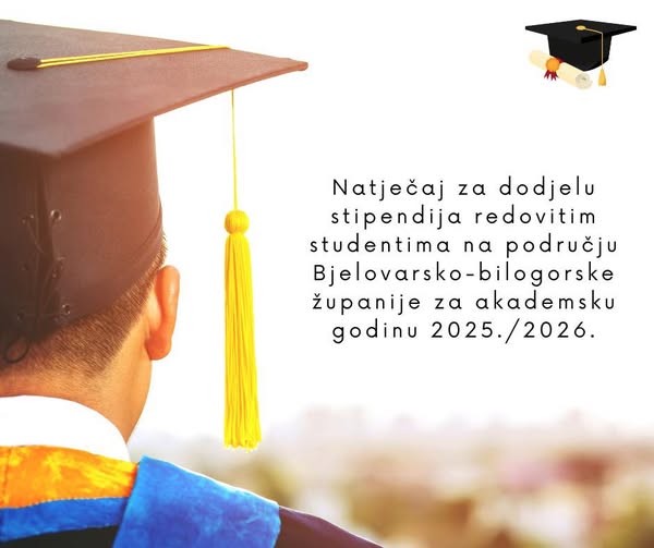 Bjelovarsko-bilogorska županija i ove godine raspisala je natječaj za dodjelu stipendija redovitim studentima za akademsku godinu 2025./2026. Stipendije se dodjeljuju u tri kategorije, za darovite studente, prema socijalnom kriteriju, za studente deficitarnih zanimanja. Rok za prijavu je 15 dana od objave natječaja, a zahtjevi se podnose isključivo u digitalnom obliku. Natječaj je objavljen 11. studenog, a njegove detalje, obrasce i popis deficitarnih zanimanja možete pronaći na poveznici ↪️ https://tinyurl.com/2fk5t996